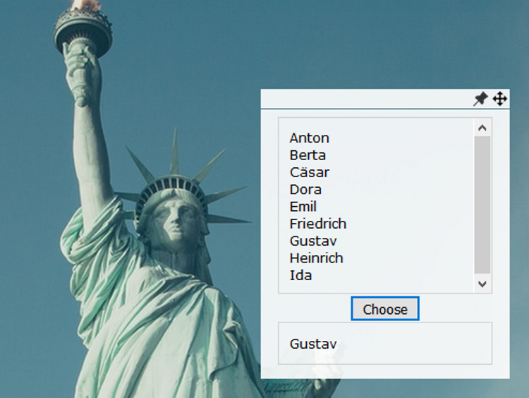 „Zufälliger Schüler“: Wenn Sie einen zufälligen Schüler Ihrer Klasse bestimmen wollen (z. B. um ihn auszufragen), können Sie hier eine Namensliste im Textformat hochladen. Tipp: Der Upload selbst einer vorgefertigten Namenliste ist relativ aufwendig. Schneller geht’s wie folgt: Sie klicken auf das Würfelsymbol und verwenden einen Würfel. Die Augenzahl des ersten Wurfs bestimmt die Reihe des Schülers, der zweite Wurf den Sitzplatz, wobei Sie vorher festlegen sollten, ob von rechts (z.B. vom Fenster) oder von links (z.B. der Wand) gezählt wird. Alternativ können Sie mit zwei Würfeln arbeiten. Der linke bestimmt die Reihe des Schülers, der rechte Würfel den Sitzplatz z.B. vom Fenster aus gezählt.