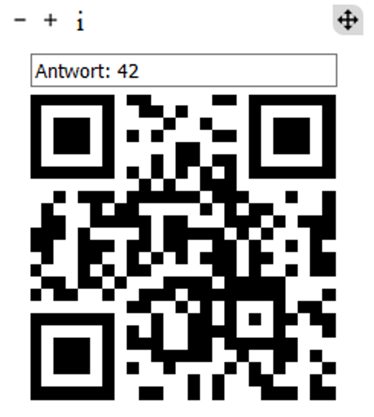Der „QR-Code-Generator“ ist sehr hilfreich. Wenn Sie möchten, dass Ihre Schüler mit den Handys schnell eine bestimmte Website besuchen, so tippen Sie die URL in die Eingabezeile ein. Drücken Sie Return, so wird der QR-Code generiert. Jetzt müssen Ihre Schüler nur noch den Code mit ihren Smartphones scannen und schon sind sie auf der Website angekommen. Besondern gefällt mir die Möglichkeit, auch Texte per QR-Code zu verschicken. So können Sie z.B. die Lösung einer gerade zu rechnenden Aufgabe eingeben. Die Schüler können dann per Scan feststellen, ob ihre Lösung richtig ist. Geben Sie die Lösung in die Zeile ein und drücken Sie Return – fertig ist der QR-Code. Doch achten Sie darauf, nicht zu viel Text einzugeben, denn sonst wird der QR-Code sehr stark gerastert und kann evtl. nicht mehr so gut gescannt werden. Falls Sie zusätzlich einen zweiten Code erzeugen möchten, so klicken Sie auf „+ 1“. Leider sind derzeit maximal zwei QR-Codes gleichzeitig möglich.